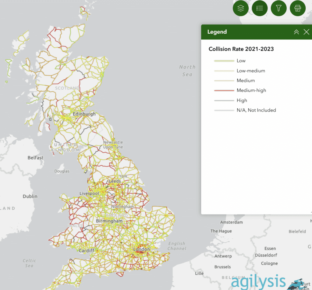 We’re pleased to announce that the 2025 Crash Risk Mapping (CRM) results are now available. The latest national picture of crash risk on Britain’s motorways and A roads is now available through our interactive mapping tool. Our Crash Risk Mapping Tool is freely accessible to all authorities and practitioners, offering an intuitive way to explore and understand patterns of road safety risk across the strategic and major road networks.